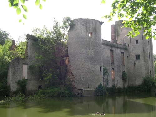 Waterburcht van de heren van Grimbergen uit het vierde kwart van de 15de eeuw, rond 1610 omgebouwd tot 'huis van plaisantie' met bijgebouwen en na 1944 vervallen tot kasteelruïne; op heden geconserveerd als ruïne omgeven door gemeentelijk park met sporen in het microliëf van een klassieke Franse tuin van circa 13 hectare, aangelegd tijdens het derde kwart van de 18de eeuw; verbost tijdens de 19de eeuw.