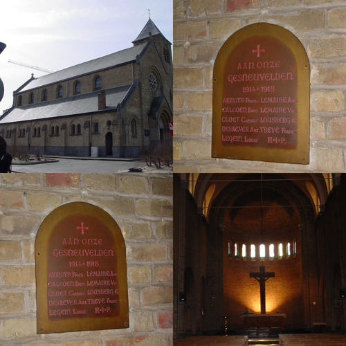 In de kerk hangt een koperen gedenkplaat voor de negen militaire doden uit de Eerste Wereldoorlog, afkomstig van Nieuwpoort-Bad.