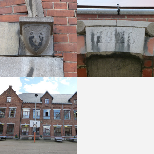 Hoofdgebouw uit de jaren 1920 met eclectisch uitzicht met uiterst rechts het voormalige woonhuis van de directeur. Aan de straatzijde was deze hoofdvleugel in het verleden voorzien van een voortuin afgezet met een lage bakstenen muur met ijzeren hekken (zie foto uit de jaren 1950).