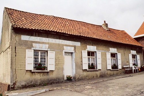 Breedhuis van drie traveeën en één bouwlaag onder pannen zadeldak, opklimmend tot het midden van de negentiende eeuw. Verankerde en met schijnvoegen gecementeerde gevels, gemarkeerd door rechthoekige muuropeningen, nagenoeg vierkante vensters op lekdrempels van blauwe hardsteen met bewaarde luiken en schrijnwerk.